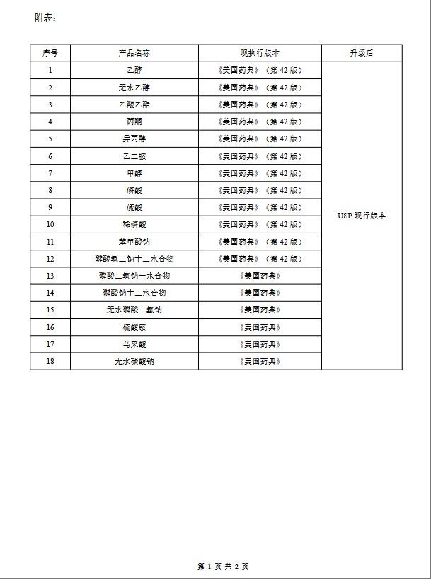 藥用輔料產(chǎn)品《美國藥典》質(zhì)量標準變更告知函:
